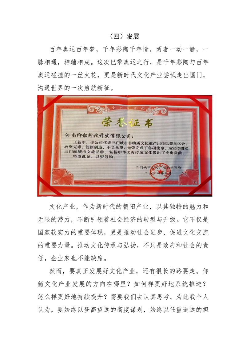 董事長王新軍攜"花開奧運“文創(chuàng)彩陶遠(yuǎn)赴巴黎奧運會