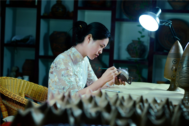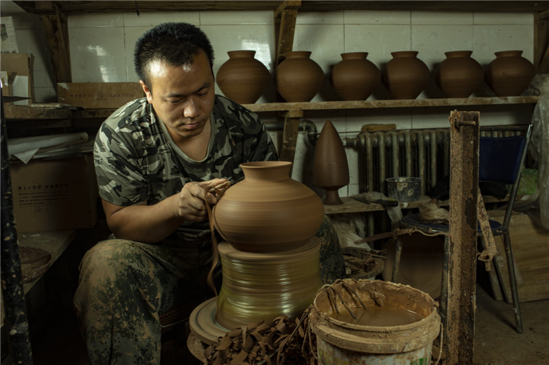 選用優(yōu)質(zhì)陶土,加上一把黃河泥,經(jīng)過打磨、雕刻、燒制等系列工序后,搖身一變成了一個(gè)古色古香的彩陶。河南仰韶科技開發(fā)有限公司總經(jīng)理、仰韶彩陶傳承人劉新安說,“我們?nèi)慷际侨斯ぶ铺眨胤ㄗ鳂I(yè),滿輪拉坯成型,天然無機(jī)顏料彩繪,差不多整個(gè)制作過程要兩周左右?!?/span>